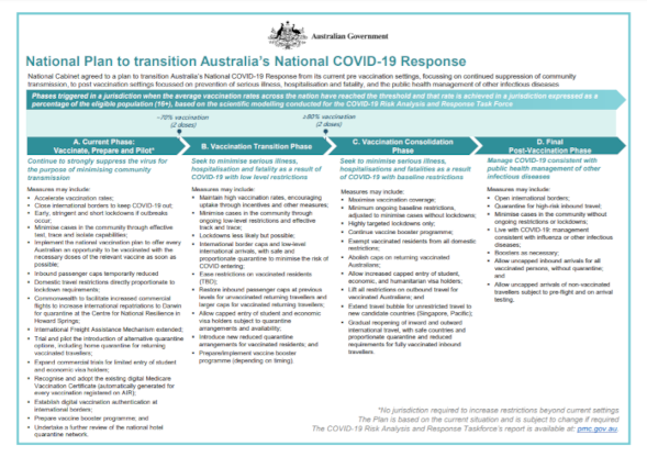 16歳以上のオーストラリアの人口の70%が2回接種したらフェーズBに移行し、80%が2回接種したらフェーズCに移行します。