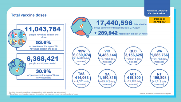 オーストラリア国内でデルタ株の感染者が確認されたことを受けて、一部の地域ではロックダウン等で対応を行っています。また、オーストラリア政府はワクチン接種の推進と加速に努めています。